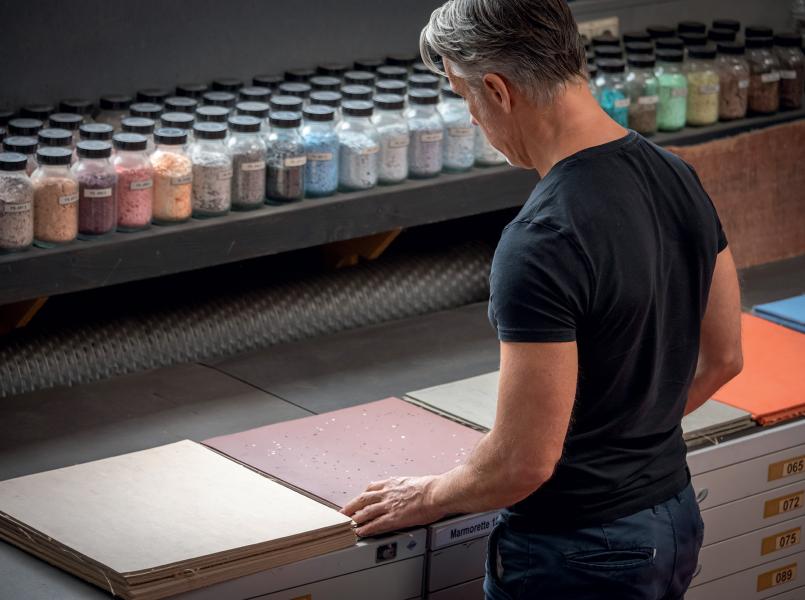 • De fabriek sorteert de ingezamelde snijresten en zet ze om in korrels die vervolgens opnieuw worden geïntegreerd in de samenstelling van nieuwe Gerflor-producten.