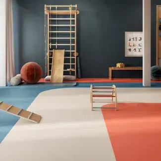 OdV interieurarchitecten voorzagen het nieuwe schoolgebouw van een fris en kleurrijk interieur. Primaire kleuren als geel, blauw, roze en groen zorgen voor vrolijke accenten en geven bovendien ook ‘richting’ in het gebouw; aangezien de verschillende afdelingen eigen kleuren hebben gekregen. Om de kleuren ook in de vloer door te kunnen voeren, ging de voorkeur van de interieurarchitect uit naar pvc-vloeren van Gerflor. Gerflor biedt namelijk een brede keuze aan kleuren die exact bij het ontwerp aansloten. De docentenkamer kreeg een huiselijke sfeer; hier werd gekozen voor Creation Wood, een pvc-vloer met een niet van echt te onderscheiden houtlook.
